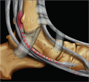 There are other ligaments located deeper than the plantar fascia. These include the spring ligaments, the failure of which will lead to a flat foot. The commonest cause of this (in middle age) is when it is associated with Tibialis Posterior Tendon failure as described in 'The Subtalar Joint' [is it?]. Early diagnosis of this condition is essential if major surgery is to be avoided.